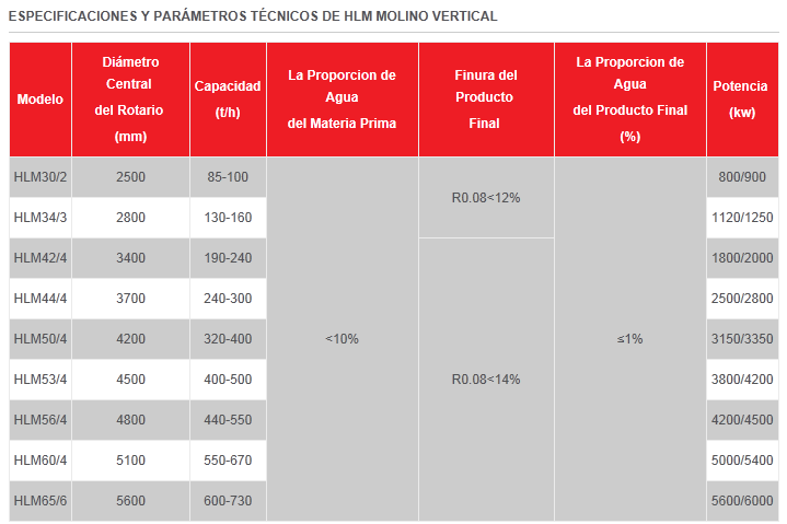 Hong Cheng HLM serie molino vertical tiene las siquientes ventajas: eficiencia , bajo consumo , mayor dimensión de alimentación ,fácil de ajustar la finura final del producto, el costa de operación más bajo, ahorro espacio ,poco ruido ,poco desgaste ,protección para medio ambiente etc. El molino vertical se aplica en la energía electrica,metalurgia ,industria química y no metalicos , tales como en el área de cemento , piedra caliza , escorias , manganeso ,yeso,carbón ,barita ,calcita etc.
