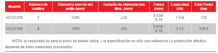 HCQ 1500 molino se ha usado un nuevo diseño para el rodillo de molino ,con mayor eficiencia ,menor consumo de energía y un redimiento mucho mejor que los molinos tradicional Raymond.Este molino es ampliamente utilizado para triturar minerales no inflamable y no explosivo de la dureza inferior a 7 mohs y la humedad inferior al 6%.Tales como : caliza , calcita ,dolomita ,carbón activado , talco ,dioxido de titanio , cuarzo , feldespato , bauxita , mármol , yeso , barita , fluorina ,i lmenita ,fosfato ,arcilla cerámica , grafito , arcilla , caolín , diabasa , ganga ,wollastonita , cal , circón , bentonita , manganeso ect. La figura del producto final esajustable desde los 80 hasta 600 mallas de acuerdo con los requerimientos.Cuyo alcance es mucho más amplio que el tradicional molino Raymond.